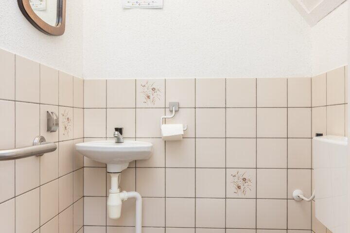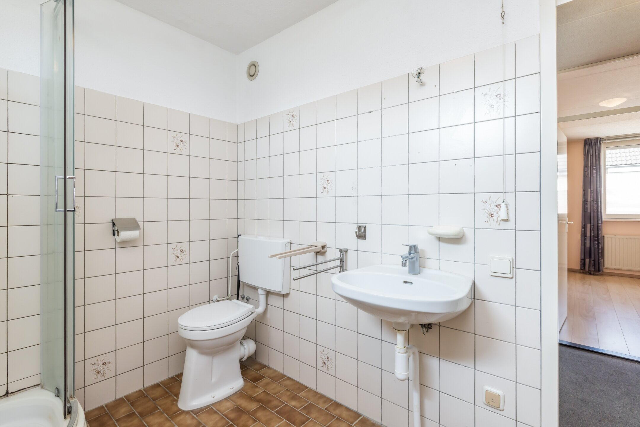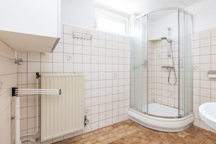 Ruime overloop met toegang tot de ruime 3 slaapkamers en de betegelde badkamer voorzien van een inloopdouchecabine, wastafel, een 2e toilet en daglichttoetreding. Tevens bevindt zich hier de witgoedaansluiting.