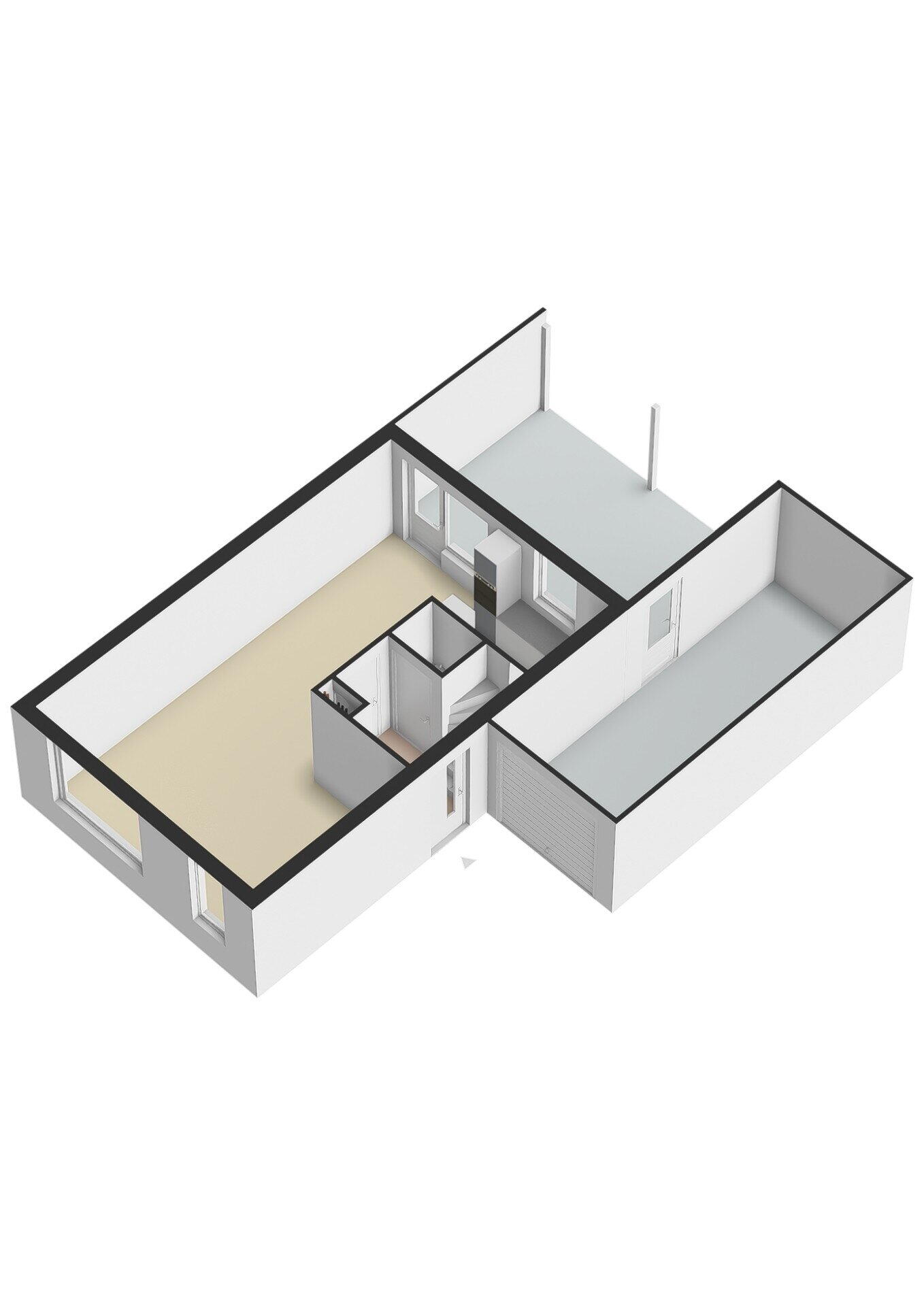 Begane grond: Voortuin; oprit; Garage. Entree/hal met o.a. meterkast en betegelde toilet met fonteintje; lichte woonkamer en semi-open keuken. De keuken is voorzien van: een gaskookplaat, magnetron (defect), vaatwasser (2024), koelkast en afzuigkap. Via de woonkamer/keuken bereikbare ruime en onderhoudsvrij aangelegde achtertuin met kunststof overkapping en hiernaast gelegen garage.